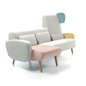 To sprawia, że w kolekcji nie ma w niej gotowych mebli. Z trzech typów siedzisk i oparć, dwóch podłokietników oraz ucha można tworzyć indywidualne kompozycje, jakbyśmy bawili się klockami, czy raczej składali misia z kolorowych części. A że daje to możliwość łączenia różnych kolorów, faktur i wzorów tkanin tapicerki, nasz mebel może być prawdziwym unikatem.