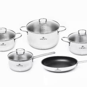- 9 elementów: rondel z pokrywką (śr. 16 cm), 3 garnki z pokrywkami (śr. 18, 20 i 24 cm), patelnia (śr. 24 cm) z powłoką teflonową DuPont Teflon Select w cenie 749 zł.