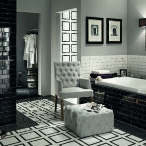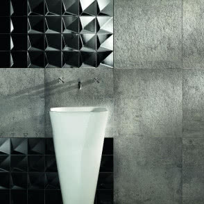 Z kolei kolekcja Berlin jest nowoczesna, ale i bardzo kobieca. Inspiracją było klubowe życie nocne niemieckiej stolicy. Wyróżniają ją dekory z namalowanymi delikatną kreską wizerunkami kobiet, a charakterystycznym motywem są wklęsłe - jakby odciśnięto w nich narożnik prostopadłościanu - płytki w różnych formatach. Ta różnorodność i nieregularność dają niezwykłe wręcz możliwości aranżacyjne. W zależności od tego, czy zdecydujemy się na regularne czy przypadkowe ułożenie wzoru, na jeden czy na wiele formatów płytek, nadamy wnętrzu zupełnie inny charakter.