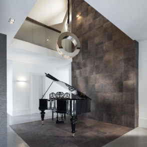 Okładziny Alhenberg poza dekoracją podłóg i ścian mogą posłużyć m.in. do wykończenia sufitów, barów, mebli czy obudowy kominków. Są efektowną alternatywę dla drewna czy kamienia, są zawsze miłe i ciepłe w dotyku, a naturalny charakter skóry sprawia, że każda realizacja ma wyjątkowy i niepowtarzalny klimat.