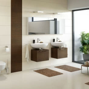 Projektanci ceramiki Koło postawili tym razem na uniwersalną klasykę, która pozwala wyjść na pierwszy plan innym elementom aranżacji łazienki.
