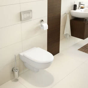 Uzupełnieniem linii ceramiki łazienkowej Spark jest wisząca miska ustępowa z estetycznie zasłoniętym mocowaniem. Może być wyposażona w wolno opadającą deskę sedesową przystosowaną do łatwego demontażu.
