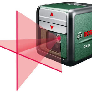 Bosch Quigo to proste w użyciu narzędzie, które pomoże Ci w niebanalny sposób udekorować ściany. Już w kilka sekund po uruchomieniu laser jest gotowy do pracy. Z niezwykłą dokładnością rzuca na ścianę dwie prostopadłe linie: pionową i poziomą. Dzięki funkcji nachylenia, za pomocą Quigo wyznaczysz także linie pod dowolnym kątem.