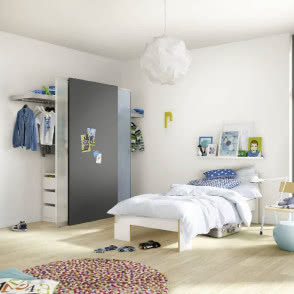 Nie zawsze możemy sobie pozwolić na garderobę w oddzielnym pomieszczeniu. Najnowsza propozycja firmy Raumplus to system Mobile - pomysł na garderobę w pokoju.