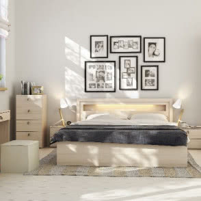 Meble R&O by VOX przeznaczona jest do aranżacji sypialni. W jej skład wchodzi komoda, toaletka, łóżko, stolik nocny, szafa dwudrzwiowa, dostawka szafy i lustra.