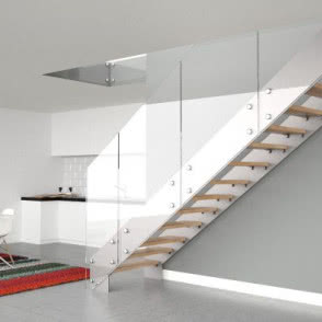 Szklane balustrady i stalowa konstrukcja nośna nadają schodom Futura niezwykle wyrafinowaną linię. Ich wizualna lekkość to zasługa balustrady z warstwowych płyt szklanych. Surowy, minimalistyczny styl schodów Futura będzie znakomitym dopełnieniem nowoczesnego wnętrza, w którym ma być dużo światła i przestrzeni.
