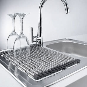 Wygląda niepozornie - rollmata to kilkanaście stalowych prętów połączonych silikonową taśmą. Za to zastosowań ma bez liku: możesz na niej postawić gorący garnek lub blachę z ciastem, użyć jako ociekacza na naczynia lub owoce, które nie zmieściły się na suszarce, a kiedy już nie będzie potrzebna - zwinąć, by nie zajmowała miejsca.