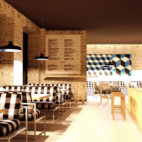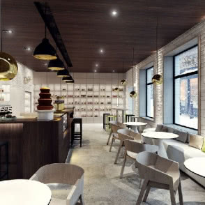 - Stworzyliśmy wnętrze w stylu loftowym - podkreśla Jakub Pszeniczny z KOBE STUDIO. - Proponujemy, aby w miarę możliwości wykorzystać naturalny materiał ścian lub zastosować cegłę jako okładzinę. Tego typu wystrój podkreśla tradycję z jaką kojarzy się marka E.Wedel, a przestrzeń zachowuje nowoczesny charakter.