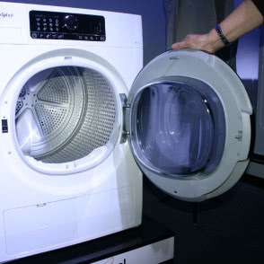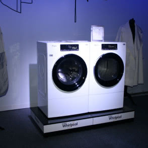 Kolejną grupa premierowych produktów marki Whirlpool są pralki i suszarki, które nie tylko skutecznie piorą i suszą, lecz przede wszystkim są absolutnie bezpieczne nawet dla delikatnych tkanin. Najbardziej zaawansowana para urządzeń z tej linii dostępna będzie w sprzedaży dopiero w drugiej połowie roku, a poznamy ją łatwo po wysokości - podniesienie bębna o 15 cm ma kolosalny wpływ na ergonomię! Poza tym pralka i suszarka będą komunikować się ze sobą za pomocą sieci wi-fi, tak że gdy wybierzemy program prania, suszarka automatycznie ustawi odpowiedni program suszenia. Nie ma więc mowy o wpadce i zniszczeniu ubrań w suszarce! Pozostaje nam więc tylko przełożyć załadunek z pralki do suszarki, bo tego urządzenia jeszcze nie potrafią :)