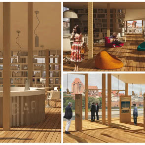 - Inspiracją dla naszego projektu była bryła, która zwyciężyła w pierwszej edycji. Skojarzyliśmy go z koronami drzew w lesie dlatego stwierdziliśmy, że strefa rekreacji będzie biegła wzdłuż całego budynku. Wydzielają ją swobodnie rozmieszczone drewniane słupki. Pozwala to czuć się tak, jakbyśmy byli w lesie - opisuje pracę Monika Kalita.