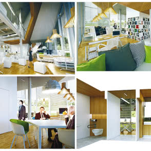 Wnętrze zaprojektowane przez zwycięski duet zawiera liczne nawiązania do natury, jest bogate w różnorodne zestawienia faktur i kształtów. Całość prezentuje się niezwykle przestronnie, przejrzyście, funkcjonalnie. Charakterystyczna dla projektu ażurowość zestawiona z mocnymi formami daje niespotykany efekt, w którym króluje równowaga przeciwieństw.