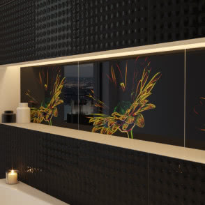 Pomimo charakterystycznych motywów i mocnych, zdecydowanych barw szklane dekoracje można z łatwością połączyć z jednokolorowymi płytkami - zarówno o błyszczącej, jak i o satynowej powierzchni. Dzięki takim zestawieniom osiągniemy modny ostatnio efekt kontrastu faktur. Dekoracje szklane z kolekcji Fluorescent Flower ciekawie wyglądają także w zestawieniu z płytkami o strukturze kamienia oraz różnokolorowymi szklanymi listwami dostępnymi w ofercie Opoczno - projektanci łazienek mają więc naprawdę wiele możliwości. Wykorzystując modny format 30 x 60 cm można tworzyć efektowne pionowe lub poziome pasy, ozdobne bordiury czy dekoracje składające się z powtórzonych motywów.