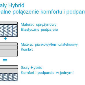 Kupując materac, już nie musisz wybierać: pianka czy sprężyny. Materac hybrydowy łączy zalety obu rozwiązań. Materac Hybrid Style, jak podobnie jak inne materace marki Sealy, są w połowie piankowe, a w połowie sprężynowe.