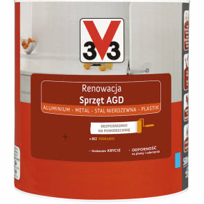Samodzielna renowacja sprzętu domowego nie jest trudna, bo przed malowaniem farbami renowacyjnymi V33 nie trzeba usuwać starej powłoki ani stosować podkładu. ½ litra farby wystarcza na podwójne pomalowanie 3 m².