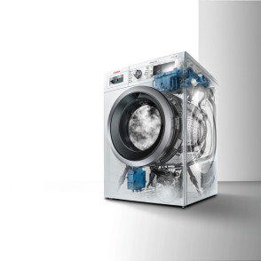 Oprócz lub zamiast prania w wodzie nowa pralka Bosch odświeża i dezynfekuje odzież za pomocą aktywnego tlenu (O3). Do bębna zamiast wody trafia delikatna mgiełka - wytworzony przez specjalny generator aktywny tlen i zimna para wodna. Aktywny tlen nie tylko usuwa z ubrań niepożądane zapachy, lecz także 99,99% bakterii i zarazków. Dzięki temu wyjęte z pralki rzeczy są czyste, świeże i w pełni higieniczne.