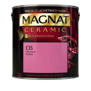Ceramiczna farba do wnętrz Magnat została wyprodukowana przy wykorzystaniu innowacyjnej technologii Ceramic System bazującej na ceramicznych komponentach oraz najwyższej jakości żywicach i pigmentach. Ta unikalna formuła nadaje farbie Magnat Ceramic ponadprzeciętną odporność na szorowanie i wielokrotne zmywanie. Pomalowane tą farbą ściany nie absorbują zabrudzeń i "trudnych" plam, a także są odporne na środki dezynfekujące. Dzięki temu powłoki i kolory są wyjątkowo trwałe.