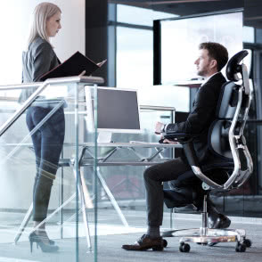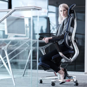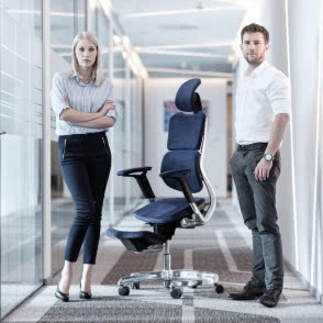 Poza tym specjaliści potwierdzają, że szkodliwe jest wielogodzinne trwanie w jednej pozycji, nawet ergonomicznej. Zalecają więc częstą zmianę pozycji. I właśnie nad fotelem, który to umożliwia przez kilka lat pracowali projektanci Andrzej i Mateusz Kieryłło. Tak powstał Blue Bird Hybrid Chair - pierwszy na świecie fotel biurowy, który pozwala na przemienne siedzenie w dwóch pozycjach, klasycznej lub w klękosiadzie. Oparcie fotela w obu pozycjach idealnie podpiera kręgosłup, prawidłową pozycję stabilizują podłokietniki i zagłówek. I to bez konieczności jakichkolwiek regulacji.