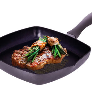 Propozycją dla tych, którzy chętnie sięgają po bardziej wyszukane przepisy jest patelnia grillowa z karbowanym dnem i również z powłoką nieprzywierającą. Usmażone na niej potrawy wyglądają i smakują podobnie, jak te pieczone na ogrodowym grillu.