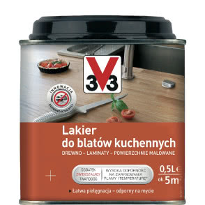 Firma V33 przygotowała specjalny lakier do blatów kuchennych. Można nim malować nie tylko lite drewno, lecz także laminaty, również te wcześniej malowane i lakierowane. Produkt sprawdzi się na wszystkich europejskich i egzotycznych gatunkach drewna, z których wykonane są meble i stoły kuchenne. Rzecz jasna lakier V33 jest w pełni bezpieczny, gdyż dopuszczony jest do kontaktu z żywnością.