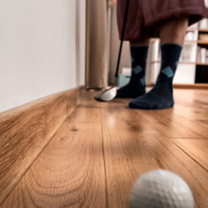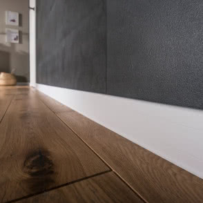 Listwy Esquero dostępne są w palecie 12 dekorów, które wybrano na podstawie najczęściej kupowanych odcieni i gatunków podłóg. Oczywiście nie mogło zabraknąć uniwersalnej bieli, która koresponduje praktycznie z każdym rodzajem podłogi. Wystarczy wymienić dotychczasowe listwy przypodłogowe na białą Esquero, aby nadać wnętrzu zupełnie nowy charakter. To efektowny i szybki sposób na odświeżenie wystroju mieszkania bez konieczności kosztownej wymiany samej podłogi.