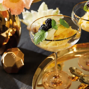 Trudno wyobrazić sobie sylwestrową noc bez szkła stołowego. Także kryształowe szklanki i kieliszki Crystal Diamond zdobi charakterystyczny, brylantowy szlif. Gwiazdą wieczoru są oczywiście pucharki do szampana, które wyglądają jak rodem z filmu Wielki Gatsby. Ich elegancki kształt, pozłacany rant i połyskująca stopa sprawia, że wznosząc toast poczujemy się jak na wielkim balu.