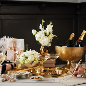Aby zastawa Diamond prezentowała się jeszcze piękniej, biały obrus nakryjmy czarnym bieżnikiem. Do tego świeże kwiaty, odrobina złotego confetti i voila! Niech nasz stół lśni diamentowym blaskiem! Szczęśliwego Nowego Roku!