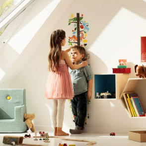 Zaaranżujmy przestrzeń dla dziecka tak, by miejsca, w których najczęściej spędza czas były w pobliżu okien. Strefa zabawy przedszkolaka czy biurko ucznia mogą być nawet po oknem, jeśli będzie to okno bezpieczne, takie jak np. VELUX z laminowaną szybą wewnętrzną. Taka szyba, nawet jeśli zostanie zbita pod wpływem silnego uderzenia, nie roztrzaska się ani nie wypadnie, a więc mamy stuprocentową pewność bezpieczeństwa. Okno VELUX Standard Plus w opcji Premium z taką właśnie szybą ma też inne zalety: górne otwieranie (dziecko samo nie sięgnie do okna i nie otworzy go), ma zintegrowaną wentylację, dzięki której pomieszczenie jest wentylowane nawet przy zamkniętym oknie. Można je wyposażyć w system sterowania radiowego VELUX INTEGRA (nawet okno bardzo wysoko zamontowane można wygodnie otworzyć).