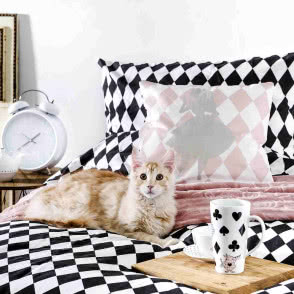 Zaczarowana kolekcja tekstyliów i ceramiki, inspirowana Alicją po drugiej stronie lustra, dostępna jest w salonach home&you od 25 maja 2017 roku. Akcesoria z filmowym motywem szachownicy oraz postaciami: Alicją i Białym Królikiem, każdą marzycielkę przeniosą w pastelową krainę pełną tajemnic i pięknych snów. W kolekcji dostępne są: pościel, poszewki na poduszkę, czajniczek, kubki oraz podkładka na stół.