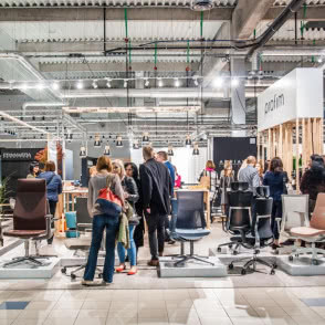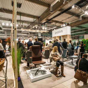 Odwiedzający stoisko mieli także możliwość zapoznać się z jeszcze jednym wyjątkowym produktem – pufką Mickey, również autorstwa ITO Design, która od niedawna jest dostępna w ofercie Profim. Tym, co wyróżnia Mickey spośród innych mebli tego typu, jest łatwość dostosowania do pozycji użytkownika – jednym gestem z niewysokiej pufy zamienia się w wyjątkowo wygodne podczas pracy na stojąco podparcie. Możliwość odchylania na boki i szeroki zakres regulacji wysokości pozwalają na dynamiczne i swobodne korzystanie z produktu, a nieszablonowy design wpływa na bardziej swobodną atmosferę w biurze.