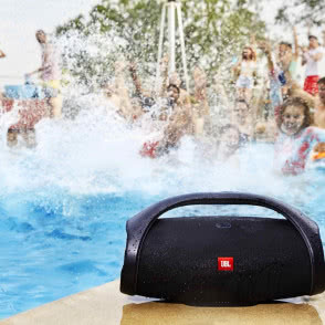 JBL Boombox posiada klasę wodoszczelności IPX7. Oznacza to, że głośnik można zanurzyć w wodzie na głębokość do 1 m na maksymalnie 30 minut. Jest to tzw. pierwsza klasa wodoszczelności "podwodnej". Przedmioty tej klasy nadają się do użytku w czasie pływania w wodzie i snorkelingu, gdzie duże głębokości nie występują. Przy tak potężnym głośniku jeszcze ciekawszą wydaje się być technologia JBL Connect+, czyli możliwość połączenia ze sobą nawet ponad 100 głośników. Takie rozwiązanie z pewnością pozwoli rozkręć spektakularną imprezę!