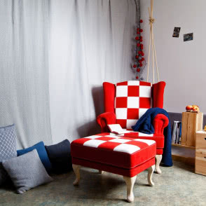 - Projekt mebli o wzorach zaczerpniętych z narodowych barw tworzyliśmy od podstaw metodą prób i błędów - mówi Anna Bułło, właścicielka Studia Tkanin Nandoo.pl. - Popularnych obecnie nadruków w ogóle nie braliśmy pod uwagę. Sprawdzaliśmy różne szablony, kroje i metody łączenia tkanin, szukaliśmy sposobu na skrojenie obicia tak, aby materiał dobrze "pracował" na fotelu. Był to spory wysiłek dla całego zespołu, ale satysfakcja jest tego warta.