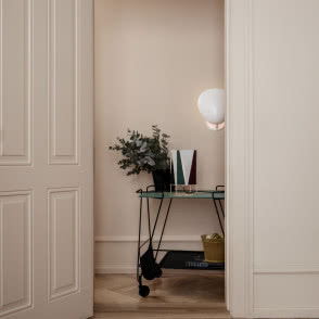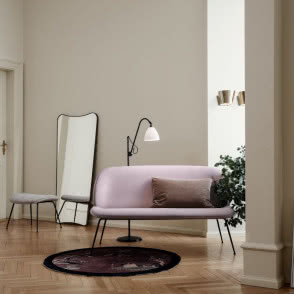 Aby nadać pomieszczeniu dodatkową głębię, wprowadzić do niego światło w ramach nowości duńska marka proponuje również przeskalowane, okrągłe GUBI Mirror. Dzięki niespotykanemu rozmiarowi staje się ono elementem dominującym we wnętrzu, wobec którego nie sposób przejść obojętnie. Klasyczny kształt w połączeniu z krawędzią z czarnego mosiądzu ładnie odcina się od jasnej ściany, zmiękcza zimną taflę i nadaje pomieszczeniu ciepłą atmosferę.