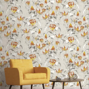 Motywem dekoracyjnym tapety Skardu, jest męczennica pospolita, lepiej znana pod nazwami passiflora lub marakuja. I choć kwiaty tej rośliny to kolorystyczne cuda natury, projektanci Muraspec zdecydowali, że to nie one będą motywem dekoracyjnym, tylko skromne estetycznie owoce. Tak więc kwiaty i liście dosłownie i w przenośni pozostały w tle, oddając stylistycznego pola czerwono-fioletowym jagodom. Wrzecionowate owoce tworzą estetyczne kontrapunkty dla pozostałych części rośliny utrzymanych w estetyce szarości.