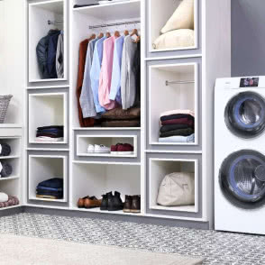 Haier Duo Dry to pierwsza na świecie pralko-suszarka, która w jednym urządzeniu oferuje dwa pionowo ustawione, niezależnie sterowane bębny. Górny pomieści 4 kilogramy prania, zaś w dolnym zmieścimy 8 kg prania lub 4 kg wsadu do suszenia. Oznacza to, że otrzymujemy pralkę o łącznej 12-kilogramowej pojemności razem z 4-kilogramową suszarką w jednej, kompaktowej, jak na oferowane możliwości, obudowie. Rzeczywiście Haier Duo Dry zaskakuje wymiarami - ma jedynie 128 cm wysokości, 60 cm szerokości oraz również 60 cm głębokości. Dzięki temu z powodzeniem zmieści się w standardowe wnęki przeznaczone dla pralek nawet w mniejszych mieszkaniach.