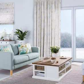 Twój salon również może wyglądać jak z okładki magazynu. Wystarczy, że wysłużoną sofę przykryjesz pokrowcem w ulubionym pastelowym kolorze, wybierzesz biały stolik kawowy, a ciemniejsze zasłony wymienisz na te kremowe - z delikatnymi motywami roślinnymi.
