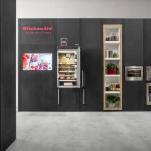 Na EuroCucina 2018 mogliśmy zobaczyć, między innymi, nowe urządzenia chłodnicze marki KitchenAid. Reprezentują one nową jakość w dziedzinie przedłużania świeżości żywności. Jednocześnie, starannie przemyślana organizacja wnętrza powoduje, że wszystkie przechowywane w nich produkty są zawsze łatwo dostępne. Na szczególną uwagę pośród tegorocznych nowości zasługuje nowe Combi Tall 400 o wymiarach 193cm x 70cm i związanej z tymi wymiarami rekordowej pojemności. Funkcje Direct Cool i Sensor Fresh, technologia kontroli wilgotności i filtry antybakteryjne, w które lodówka jest wyposażona, zdecydowanie przedłużają żywotność oraz pomagają zachować aromat przechowywanych w niej produktów, a także gotowych potraw.