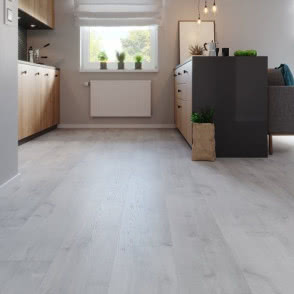 Jasna podłoga we wnętrzu sprawia, że wydaje się ono większe i bardziej przestronne. Standardowo meble w takich pomieszczeniach powinny być o dwa odcienie ciemniejsze od paneli, ale moda na styl skandynawski we wnętrzach pozwala na odważniejsze, kontrastowe połączenia. Dąb Sapporo to niemal biały dekor z delikatnym przełamaniem szarością. Kolor sprawdzi się zarówno w stonowanych aranżacjach, jak i przy uwydatnianiu pozostałych elementów w pomieszczeniu, takich jak antracytowe meble czy dekoracje w ciemnych tonacjach.