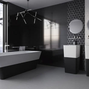 Kolekcja Moonlight to gra kontrastów - błyszczącej bieli i czerni, przywodząca na myśl światło księżyca rozświetlające ciemność nocy. Płytki z tej serii posiadają wzór eleganckiego rombu oraz klasycznej jodełki i są dostępne w wymiarze 29,5 x 29,5 cm oraz klasycznym formacie cegły 9,8 x 19,8 cm, dzięki czemu pozwalają stworzyć wnętrza w różnych stylach - od skandynawskich po glamour.
