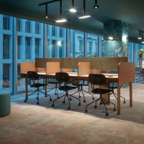 Twórcy butikowego coworku zadbali o każdy detal aranżacji - uwagę użytkowników przyciągają głębokie odcienie turkusu, marbling oraz meble i dodatki polskich marek. Otwarcie the Nest już w przyszłym tygodniu.
