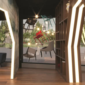 - Podczas projektowania poprzez układ ścian zyskaliśmy pewnego rodzaju tunel i przedzieliliśmy przestrzeń nie tylko dwoma ażurowymi regałami na lampy, ale również dwiema ścianami o intensywnym kolorze, które pełnią rolę tła ekspozycji. W ten sposób wydzieliły się mniejsze strefy. W każdej z nich można zaprezentować fotel z lampą czy stół. Wisienką na torcie jest pięknie podświetlone designerskie krzesło, który zyskało teatralny charakter. Kreując poznański showroom pamiętaliśmy o bliskości ruchliwej ulicy i wyglądzie witryny, która miała zachęcić do odwiedzin potencjalnych klientów. Jury konkursu Global Architecture & Design Awards zwróciło uwagę na nasze niesztampowe zastosowanie materiałów i wyeksponowanie produktów w salonie oraz spojrzenie na zastaną bryłę z całkiem innej perspektywy. - mówi Katarzyna Baworowska-Wolf.