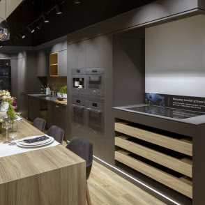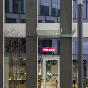 Wnętrze o powierzchni ponad 170 m² jest spójne z międzynarodowym projektem, zgodnie z którym powstają salony Miele na całym świecie. Dominuje grafitowa zabudowa z akcentami w kolorze jasnego dębu. Aktywna kuchnia przeznaczona na pokazy i warsztaty kulinarne jest zintegrowana z częścią wystawienniczą. Goście salonu znajdą tu także strefę pralnictwa i ekspozycję odkurzaczy, a w strefie kawy napiją się ulubionego napoju. Interaktywny system wizualizacji pozwala wybrać lub skonfigurować urządzenia do zabudowy - także te, których nie ma na ekspozycji, a w asyście doradców można na miejscu testować urządzenia z każdej kategorii.