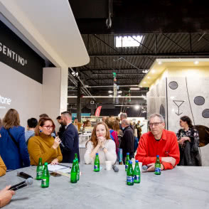 Pierwszego dnia można było spotkać się i porozmawiać z autorem koncepcji stoiska - Szymonem Hanczarem. Kolejny dzień poświęcony był inauguracji współpracy Cosentino z OW SARP, wyzwaniom współczesnego postrzegania ekologii i przyszłości architektury. W panelu wzięli udział Marta Sękulska-Wrońska, Prezes OW SARP, Piotr Jurkiewicz - Wiceprezes ds. Architektury Kryzysu Klimatycznego OW SARP, Grzegorz Goworek, współwłaściciel Studio O. oraz Michał Bachowski, reprezentujący portal Noizz. "Nie możemy zrobić regresu, zamieszkując w lesie, ale możemy iść do przodu w sposób rozsądny" - mówiła prowadząca spotkanie Ewa Trzcionka. "Kluczem do odpowiedzialnej architektury jest długowieczność tego co wytworzymy, wykorzystywanie materiałów już zrobionych i produkcja zgodna z zasadami gospodarki obiegu zamkniętego" - wtórował jej Piotr Jurkiewicz, nawiązując m.in. do zrównoważonej produkcji materiałów Cosentino.