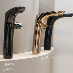 Idealnym uzupełnieniem będą także baterie, które oferujemy w wysokiej jakości powłoki PVD Everlux zapewniając niezapomniane wrażenia estetyczne w połączeniu z trwałością na lata. Baterie Naia, Insignia, Calai Ona oferują ferię kolorów, oprócz tradycyjnego chromu wybrane serie dostępne są w wykończeniach: rose gold, titanium black, brushed titanium black i czarny mat.