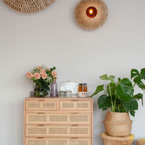 Detale dopełniają całość wnętrza Forest Spa i nadają charakter przestrzeni. Podczas projektowania skupiliśmy dużą uwagę na dodatkach, wykorzystując tapety, plakaty, rattanowe meble, dużo roślin, lustra, lampy, spójne z zamysłem właścicieli.