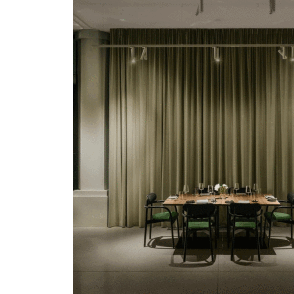 Materiały są nawiązaniem do tego co zastane, ale forma i funkcja są bardzo współczesne. To restauracja naszych czasów, nie tylko pod kątem wystroju lecz również sposobu funkcjonowania. Jest niesamowicie kompatybilna i daje wiele możliwości ustawienia i łączenia poszczególnych stref. Dlatego znajdziemy tu miejsce na każdą okazję, od eleganckiej kolacji we dwoje, po dużą rezerwację na celebrowanie ważnych chwil w gronie najbliższych.