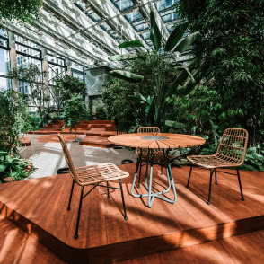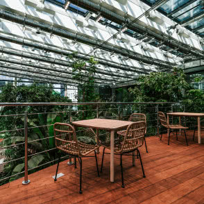 Olivia Garden została podzielona na 4 strefy, aby oferować przestrzeń dla różnych aktywności. W cieniu wkomponowanej w rozległą antresolę czarnej oliwki Bucida Buceras znajduje się bar w stylu Tiki, serwujący świeże koktajle i lekkie dania kuchni orientalnej. Ogród doskonale sprawdza się jako przestrzeń do organizacji spotkań towarzyskich i biznesowych, samodzielnej pracy i odpoczynku oraz organizacji wykładów, warsztatów czy koncertów, gdyż znajduje się w nim amfiteatr, schowane wśród gęstej roślinności stoliki oraz komfortowe miejsca relaksu.