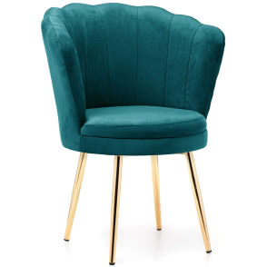 - welurowa, aksamitna tapicerka dodająca blasku, elegancji i zwiększająca komfort. Welur jest odporny na ścieranie dzięki czemu sprawia, że krzesło muszelka jest przystosowane do częstego użytkowania,