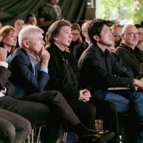 Wyjątkowe wydarzenie "Shigeru Ban i architektura dla uchodźców" zostało zakończone wieczornym bankietem. Geberit zaprosił architektów, media i osoby bliskie marce na event "Geberit: Thinking Forward". Uczestników gali uroczyście powitał Przemysław Powalacz - prezes marki. Następnie o zmianach strategicznych w firmie Geberit opowiedział Adrian Burzyk, Dyrektor Projekty i Technologie.