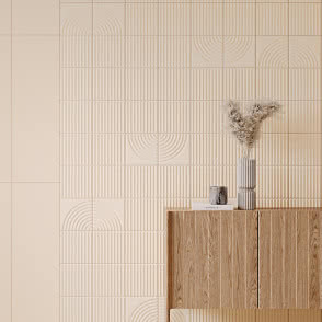Pojedyncze płytki zostały wdrożone z myślą o tym, jak będą funkcjonować w zestawie z innymi elementami kolekcji. Mamy tam wiele zaplanowanych synergii: można płytki mieszać na poziomie ich geometrii - kwadraty małe i większe, prostokąty - można je wszystkie ze sobą dowolnie zestawiać tworząc różne rytmy. Drugim aspektem jest kolor - tu mamy synergię barw, można zestawiać tony neutralne z ciepłymi barwami, na przykład beże z różami, chłodne z chłodnymi, np. szarości z niebieskościami.