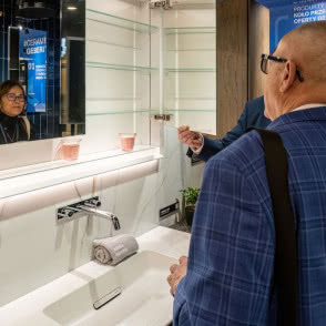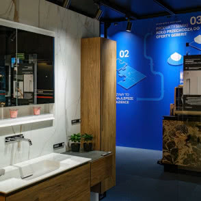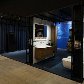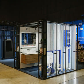Bycie liderem zrównoważonego rozwoju oznacza ciągłą konieczność doskonalenia i pracy nad nowymi rozwiązaniami - takimi, które sprawią, że produkty i działalność biznesowa będą coraz bardziej przyjazne dla środowiska. Tegoroczne stoisko dla marki Geberit zaprojektował Szymon Hanczar, założyciel hanczar studio, który w doskonały sposób połączył świat designu i sztuki oraz prezentację rozwiązań Geberit - tych przed i za ścianą. Do zabudowy samego stoiska wykorzystano materiały, które w 98% mogą być wykorzystywane ponownie. Przykładem jest system montażowy Geberit GIS, które posłużył do budowy całej konstrukcji boksu. Na stoisku nie zabrakło innowacyjnych produktów marki. W tym roku producent postawił na serię Geberit ONE, prezentując nowości produktowe m.in. miskę WC i umywalkę w wykończeniu matowym.